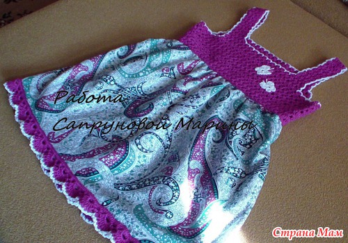 а мне нравится!!!! и цвет хорошо подобран! и сделано аккуратно!!! креативненько!!!веселенько!!! а теперь скажите пожалуйста вы когда связали то пришивали к ткани?а по низу обвязывали как?