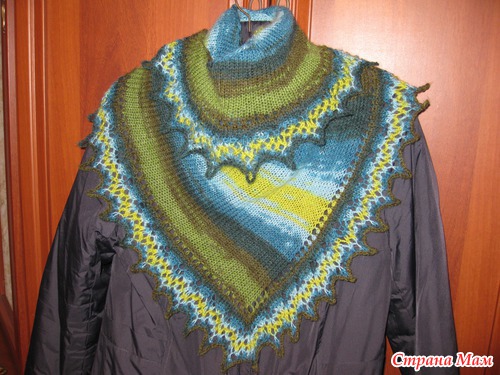 На последнем фото цвет более реально получился. Длина по внутренней дуге 110см. Ниточки Ализе Ангора Голд (10%мохер, 10%шерсть, 80%акрил, 100гр/550м) ушло больше половины мотка.