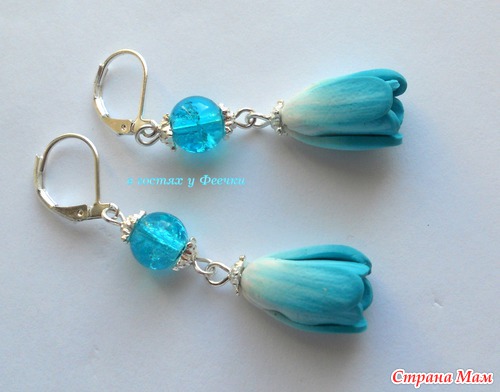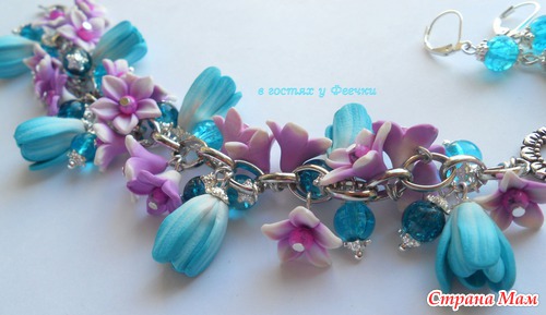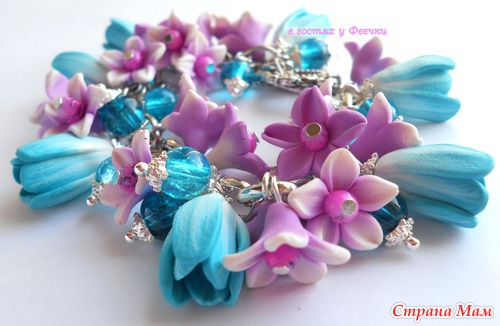 Бирюзовые тюльпанчики, лиловые лютики, бусины кракелюр