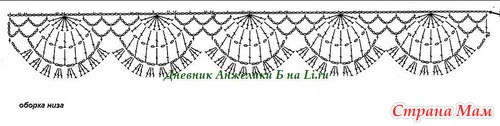 Закончила одну штанину. Но что-то мне не очень оборки нравятся... Может попробовать какие-нибудь другие? А вам как? Кстати, мой моток ниток почти кончился(((Не знаю, хватит ли на вторую оборку((