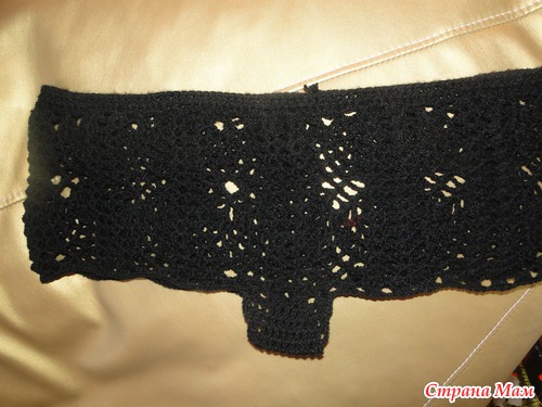 3. Экспериментальным путем выявлено, что схема с "ананасами" расширяет полотно, однако ненамного. Поэтому, желательно сделать прибавку в 4 ряду пояса, т.е. провязывая каждую 10 петлю(примерно) 2 ст.с.н.