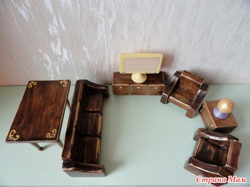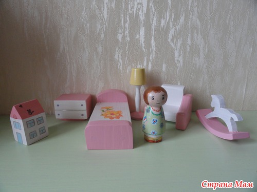 Наборы деревянной кукольной мебели для маленьких кукол и зверушек ростиком до 12см.