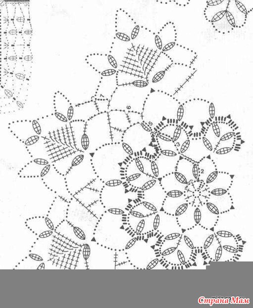 А что именно не понятно, в каком месте? Если Овалы -это похоже на пышный столбик с 3 накидами из одной петли и с общей верщиной, треугольники черные-пико, если треугольник из столбиков с 3 накидами-то похоже разветвленный столбик. На осинке есть как вязать. В поисковике так и пишите "Вязание разветвленного столбика".