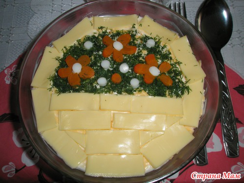 3 слой: морковь по-корейски (просушить на бумажном полотенце);