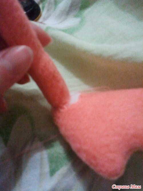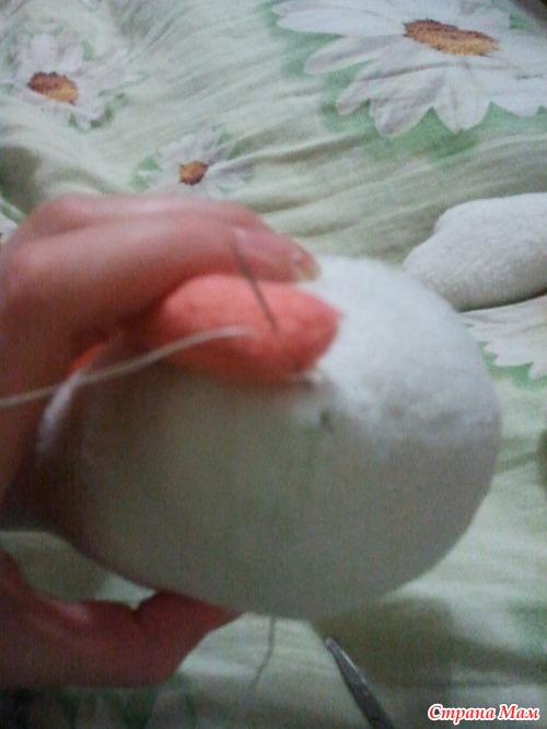 Теперь туловище. Зашиваем дырочку начиная с того места, что на фото!