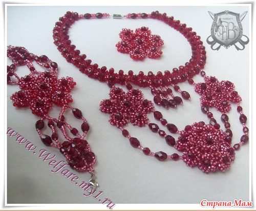 Материал: бисер (чех), кристалы Сваровских (гранатовые), фурнитура.