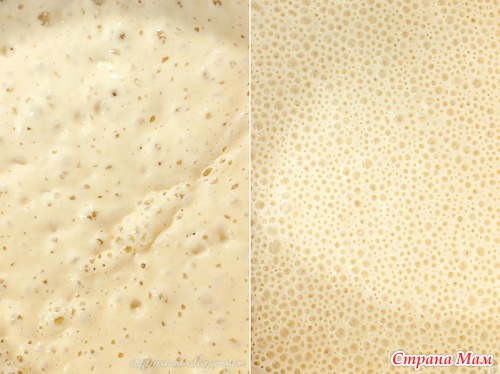 Вот так выглядит подошедшее тесто до и после вливания в него кипятка