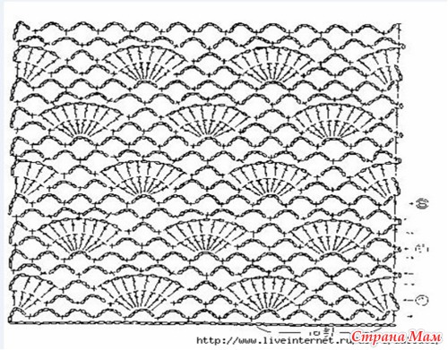 14 ряд - вяжем *1 столбик с накидом, 1 воздушную петлю в каждую арку*. Повторять от * до *.