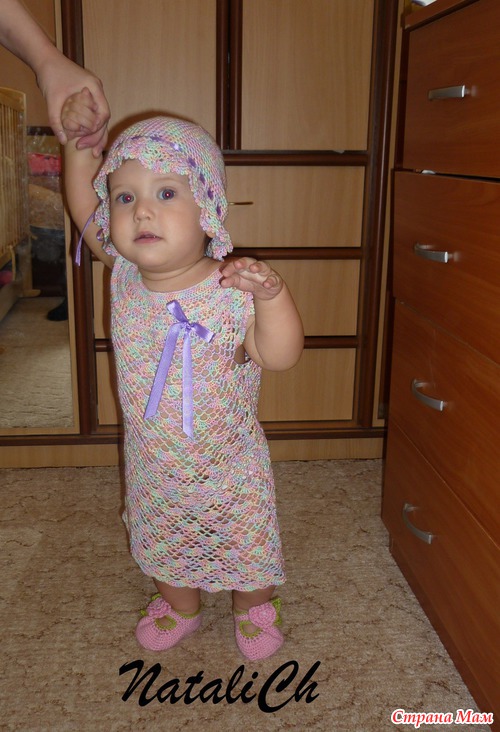 Доброго времени суток, страномамочки! Связала для своей малышки сарафан - тунику и панамку на лето. Пряжа Alize FOREVER melange, крючок №1,5.