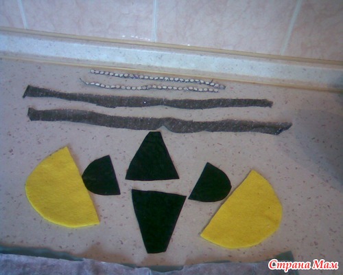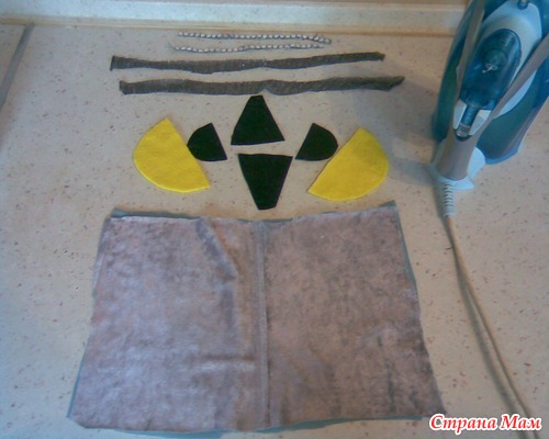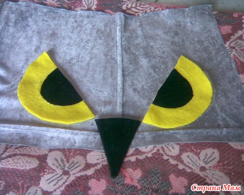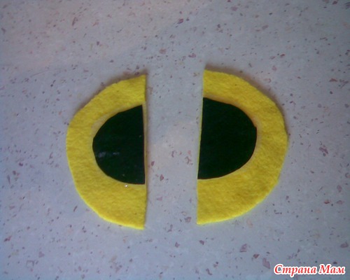 ничка для носика, два полуглазика из желтого флиса и два черных зрачка. При выкраива-