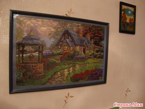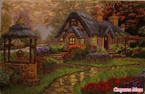 хочу поделиться с вами замечательной новостью - я наконец оформила свой домик мечты по мотивам картины Т. Кинкейда "Домик с колодцем" (оформляла собственными силами - строго не судите