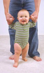 Родителей обычно интересует, можно ли водить ребенка, поддерживая его под руки. Водить можно, но не следует чрезмерно увлекаться этим. Надо следить за тем, чтобы, когда вы водите ребенка, он не наклонялся вперед или в стороны. Наклонное положение корпуса может привести к искривлению позвоночника. Кроме того, ребенку, который привык ходить при поддержке, сильно наклонившись вперед, будет трудно сохранять вертикальное положение, необходимое при ходьбе без опоры.