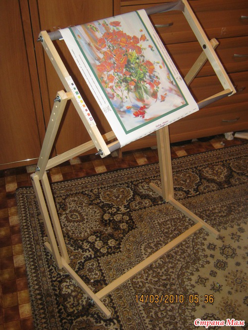 Давно я мечтала о станочке для вышивания, нашла в одноклассниках женщину, которая их продаёт и кстати очень не дорого, но всё никак не получалось, а тут сняла с пялец очередную вышивку и расстроилась, всё полотно перекосилось