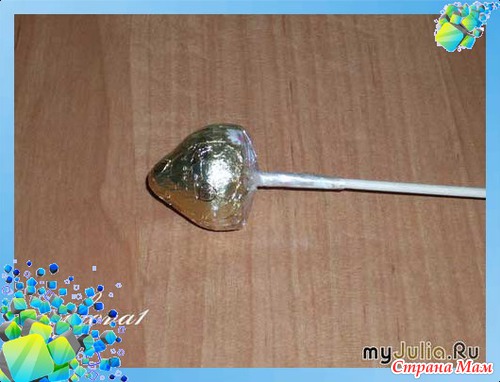 В конфету вставляем зубочистку.