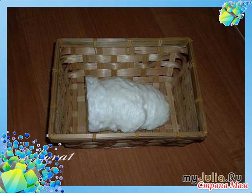 В корзину помещаем кусок пенопласта и садим его на клей. В него будем вставлять наши конфетки-подснежники.