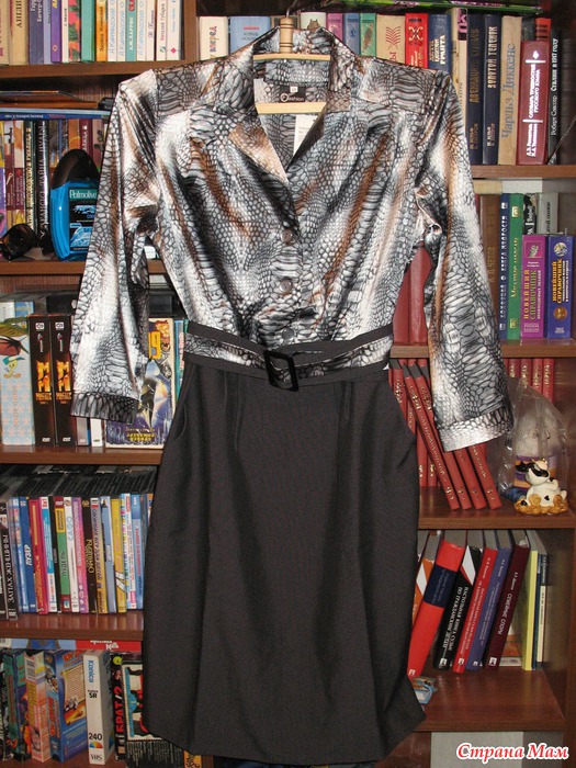 Очень понравилось, что оно с карманами, удобно положить ключи и сотовый, когда из кабинета выходишь. И поясок очень оригинальный