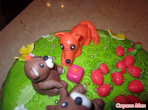 можно вопрос: чем вы рисуете глазки и носики на фигурках, и из какого вида мастики лучше лепить фигурки? у дочи скоро др, вчера впервые замесила мастику на желатине, но она слишком мягкой получилась, лепить из нее сложно... Может другой вид мастики попробовать? P.S: тортик очень красивый и яркий!