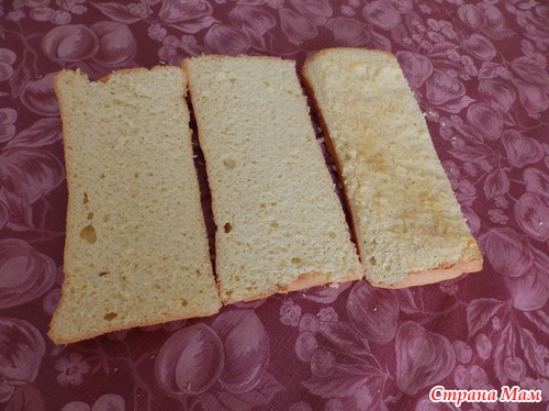 Корж разрезать на три части.