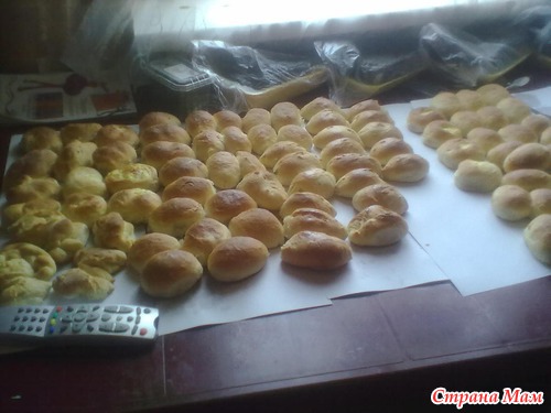 Если больше пяти протвиней, то тесто ставлю с интервалом в час, полтора. То есть на литр молока - это один замес. И только из живых дрожжей. Никогда не пользуюсь сухими. Из них теста получается почти в два раза меньше и слишком быстро подходит. И у нас кухня совмещена с залом (это была моя мечта, оооочень удобно для большой семьи), поэтому не жарко...и подходит потихоньку