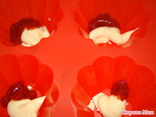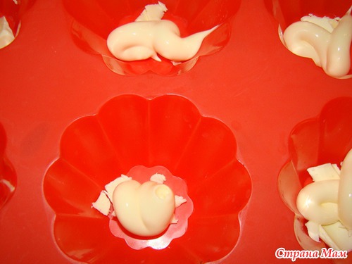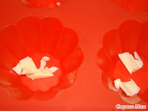 В каждую формочку кладем масло, майонез, кетчуп