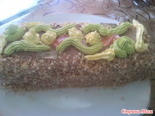 Сверху еще орешками посыпала, у меня торт всегда с орешками