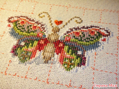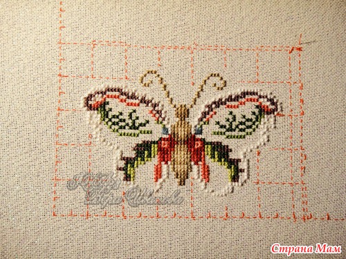 Зато создается интересный эффект - бабочка как бы выдвигается из канвы...