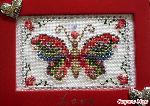Добавка от себя - специальные стежки и небольшой бэк вышивала шелковыми нитками - так ровненько ложатся, особенно, сердечко наверху...