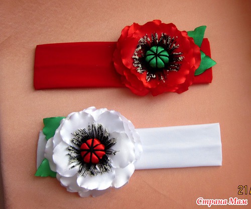 Так и не поняла, на каких повязках маки лучше смотрятся: когда цвет повязки и цветка совпадает или нет. А вы как считаете??