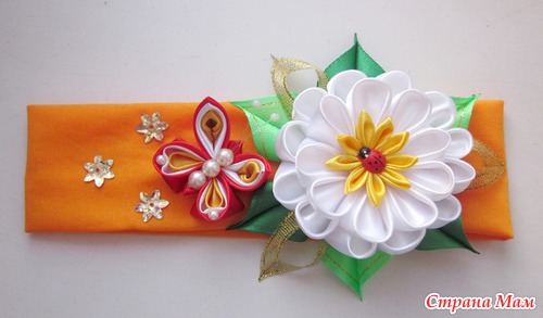 Эта родилась случайно! )) Решила сделать брошь, в процессе поняла, что получается не так, как задумывалось, поэтому получилась повязочка.