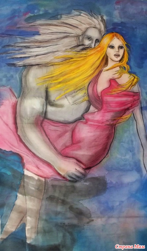 Повесила сегодня на стену. Ностальгировала) Это я рисовала, когда ещё в художке училась, лет 10 назад, если не больше. 70/60 см, ткань, батик( только я не по правилам использовала контур) Борей похищает Орифию. Читать полностью
