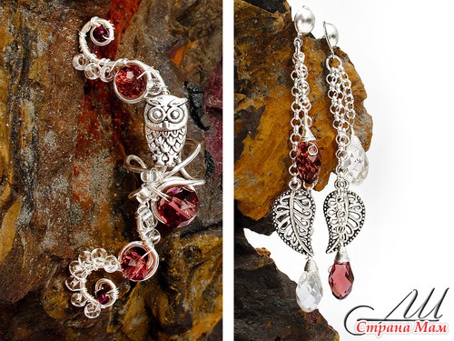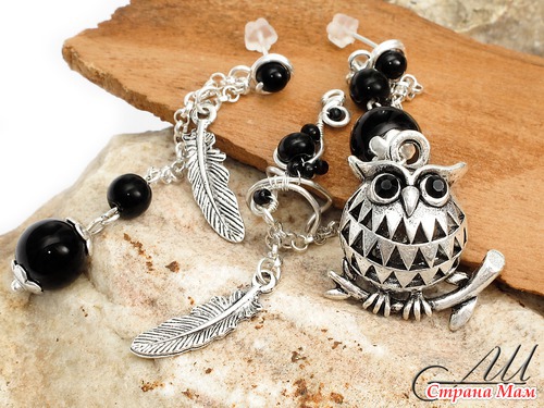 Размеры: колье - скорректирую по вашей мерке, высота совы - 4 см; серьги - 7 см