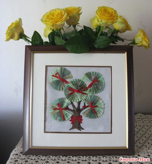 Вот такое дерево у меня получилось. Почему так плотно к рамке - таких рамок у меня в комнате 5: в одной наше с мужем фото, в других - символические картинки, да и по стилю с меделью они как родные.