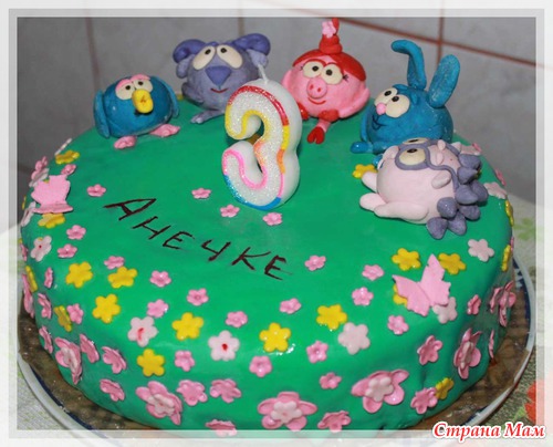 У дочки 1 марта был ДР - 3 года (отмечали 2 дня и тортика два, не могла лиить ее возможности еще разок задуть свечки), украшала мармышковой мастикой без масла, поздно в темку зашла с вопросм