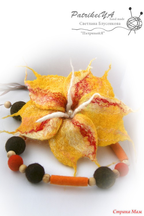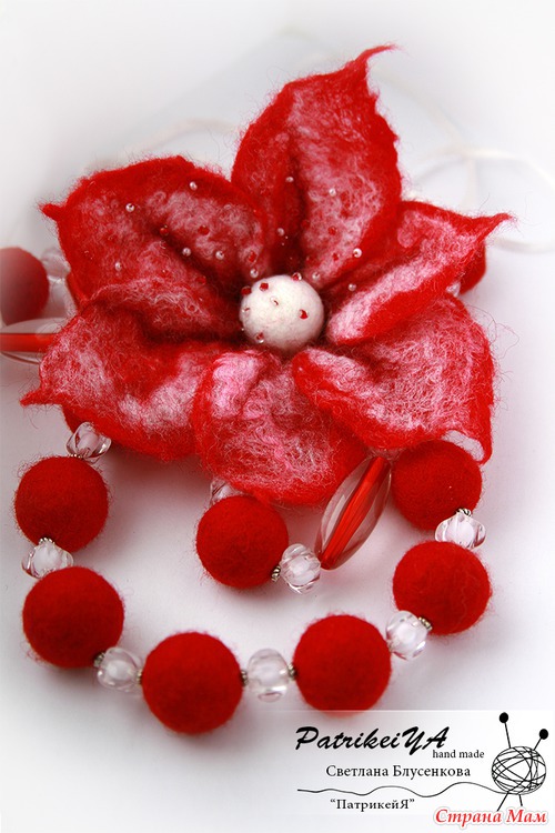 Кто знает, а может, кто не знает... Валяные изделия сейчас очень модны, а еще они очень приятные к телу и безумно красивые! Модные и очень милые валяные игрушки. Стильно, модно и красиво - валяние украшения. Вот как раз на украшения я и подсела... безумно нравиться создавать цветы, бусы, браслеты... Но, особенно цветы! Всегда они получаются неожиданно разнообразные! Не возможно повторить ни один цветок в точности. Это игра с шерстью, которая очень благодарная, и всегда радует результатом!