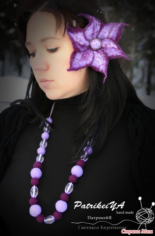 Кто знает, а может, кто не знает... Валяные изделия сейчас очень модны, а еще они очень приятные к телу и безумно красивые! Модные и очень милые валяные игрушки. Стильно, модно и красиво - валяние украшения. Вот как раз на украшения я и подсела... безумно нравиться создавать цветы, бусы, браслеты... Но, особенно цветы! Всегда они получаются неожиданно разнообразные! Не возможно повторить ни один цветок в точности. Это игра с шерстью, которая очень благодарная, и всегда радует результатом!