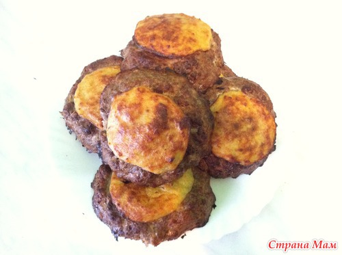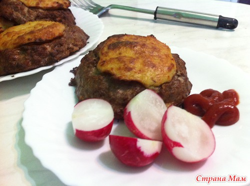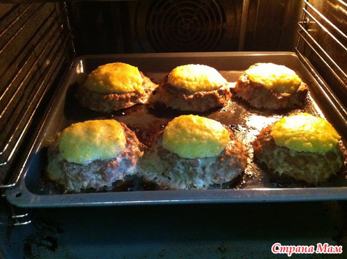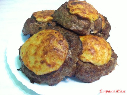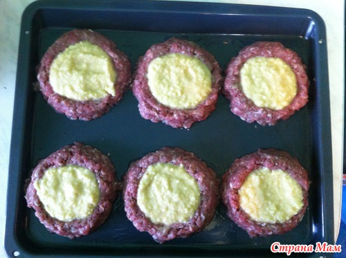 Делаем мясные шарики на протвине, в них выемку, туда смесь из картошки, Ставим в духовку при т. 180-200 градусов на 35-40 минут. Я вначале ставила конвекционный гриль на 15 минут, а потом верх-низ на 20 минут.