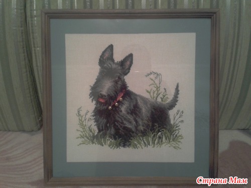 Вот такой подарок приготовила подруге на 8 марта, как увидела - сразу вспомнила про ее собачку. Вышила в рекордные для себя сроки - с середины января. Обычно ковыряюсь долго. Фото с телефона, так что сорри за качество, на самом деле собачка очень яркая.