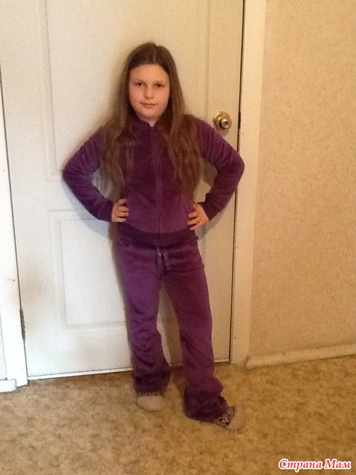 Спортивный костюм. Уже таскаем во всю))))) бархатистый. С рисунками на спине. Супер!!! Штанишки на шнурочке. Очень понравился!!!