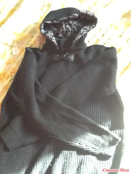 И последняя вещичка-свитер на сына. Тоже замечательный!!! Мягенький, тепленький, красивый!!! Очень оригинально пуговички на горле сделаны, капюшон дополнен другой тканью. Пашка уже таскал 2 раза в школу))))