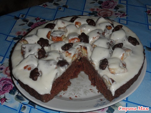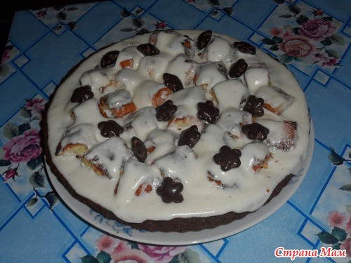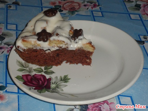 Привет. девчонки. Давно хотела попробовать что же это за бисквит "шоколад на кипятке" и вот решилась. Знаете довольно таки вкусный, единственное надо использовать масло рафинированное без запаха. Ну и конечно поделюсь рецептом: 2 яйца немного взбить добавить 0,5 ст. масла растительного, 2 ст. сахара,1,5 ч. л. соды негашеной, 1пак. разрыхлителя, 5 ст. л. какао все хорошо взбить. Добавить 1 ст. молока размешать и добавить 3 ст. муки. Должно получится густое тесто. Затем влить 1 ст. кипятка и еще раз взбить. Выливаем на противень и в разогретую духовку. Готовность проверяем спичкой. Украшаем по своему усмотрению, я украсила взбитой сметаной с сахором