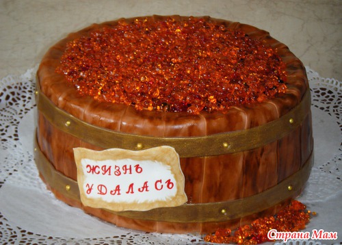 Спасибо большущее дядюшка мой в восторге был от тортика, да и гости в легком шоке все пальцем пытались попробовать, настоящая или нет только вот текстуру бочки все же пришлось рисовать, не рискнула продавливать, в следующий раз обязательно попробую