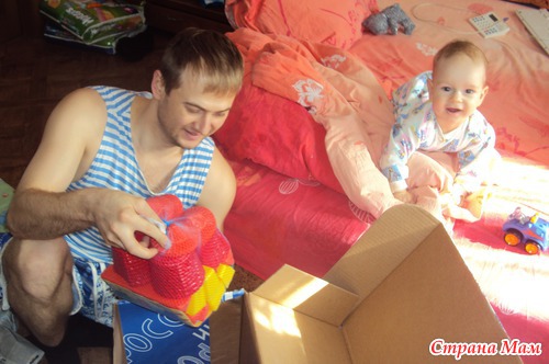 А там... столько всего интересного-вкусного-полезного!!! Егорка сразу оценил-обслюнявил машинку