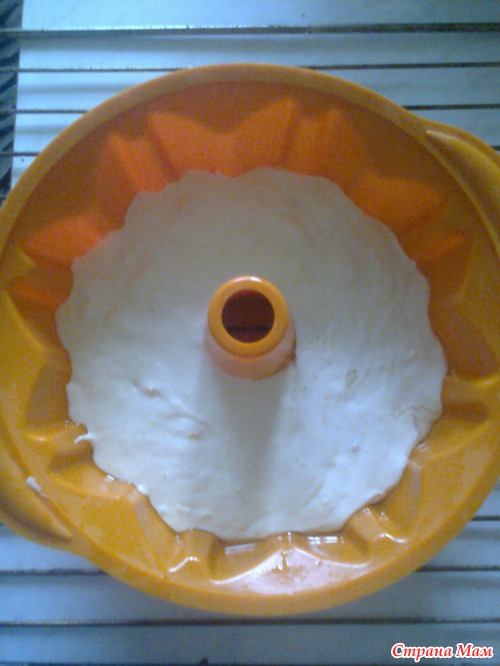 Смазать силиконовую форму маслом, форму поставить на решётку из духовки(т к полную, очень тяжело потом будет перенести в духовку) выложить массу в форму,