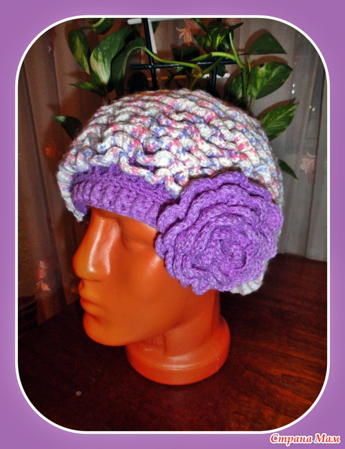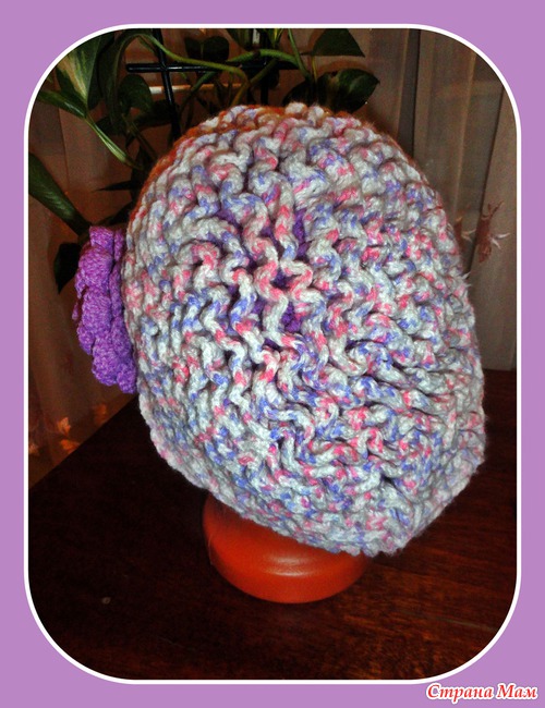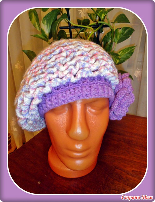 Берет вязала на заказ впервые, из детского акрила. Процесс вязания таких волн понравился. Сетка (основа шапки) была плотно на голове, а после этих волнушек шапка превращается в берет. Заказчица осталась довольна!