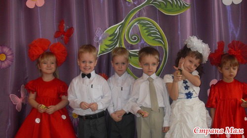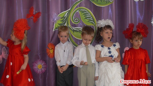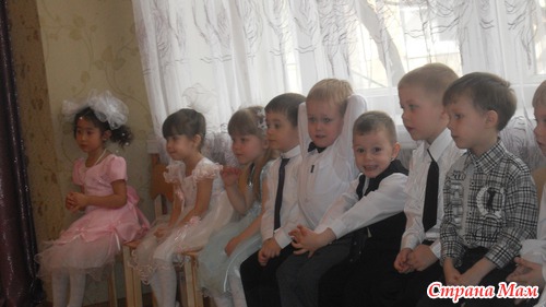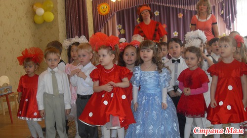 Поэтому с утра приехали пораньше, я заняла место в первом ряду, сидела долго, ждала, и вот наконец за занавесом показались счастливые мордахи детей из нашей группы. Все были очень нарядные.