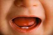 И, пожалуй, наиболее распространенный повод маминых, папиных и дедушкиных-бабушкиных волнений - сам трепетный момент пресловутого "прорезывания". Именно с ним родители (что и говорить - многие опытные педиатры) привыкли связывать широкий спектр кратковременных патологических состояний - повышение температуры, разжижение стула, кожные высыпания и даже эпизоды судорог! Ложность подобных представлений была неоднократно доказана ведущими врачами, и самым убедительным фактом, развенчивающим такую связь, является длительный срок активной дентации. Молочные зубы "режутся" на протяжении первых 2-2,5 лет ребенка, и за столь долгий период просто неизбежны видимые совпадения (сходная ситуация наблюдается и с бытующим мнением об обилии послепрививичных "осложнений"). Единственными "мелкими" неприятностями, вполне объяснимыми появлением зубов, можно считать легкое "капризничанье", слюнотечение и формирование вредных привычек - сосания пальцев, пустышек и т.п. Эффективно предотвратить нехорошие последствия постоянного раздражения малышом "зудящих" десен помогает выполнение бесхитростных гигиенических рекомендаций по уходу за полостью рта, применение местных детских гелей на противовоспалительной основе и т.д. Видимое же глазом, недавно появившееся выраженное припухание десны, воспаление десневого кармана, серьезное беспокойство малыша, понос, сыпи, лихорадка и тем более рвота, судороги - ни в коем случае не является "реакцией" на режущиеся зубы. Как правило, все перечисленные симптомы вызваны присоединением местного воспалительного процесса (афтозный стоматит, гингивит, пародонтит) либо наслоением другого общего заболевания, своевременная врачебная диагностика которого не только бесповоротно исключает связь с режущимися зубами, но и оказывается чрезвычайно важной для здоровья ребенка.