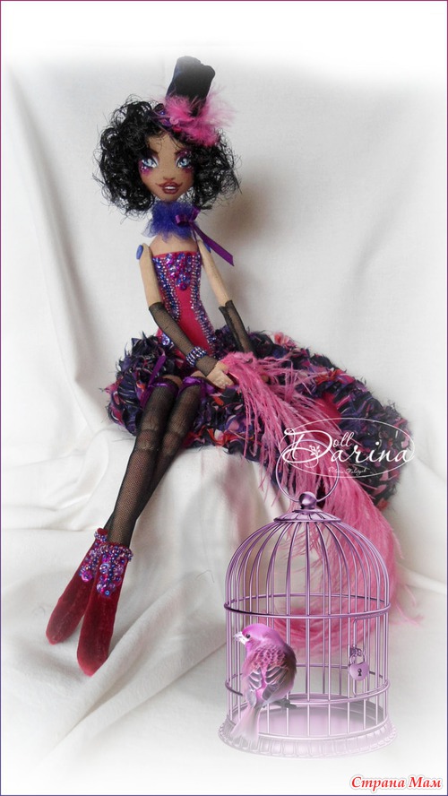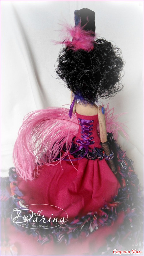 В работе использованы лён, синтепон силиконовый, бархат, батист, гипюр, шифон, ленты атласные, фатин, бисер, паетки, страусинное перо.