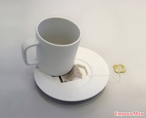 Дизайнер Jonas Trampedach придумал место для использованного чайного пакетика. Он "похоронил" его в гробике, расположенном под чашкой в блюдце.