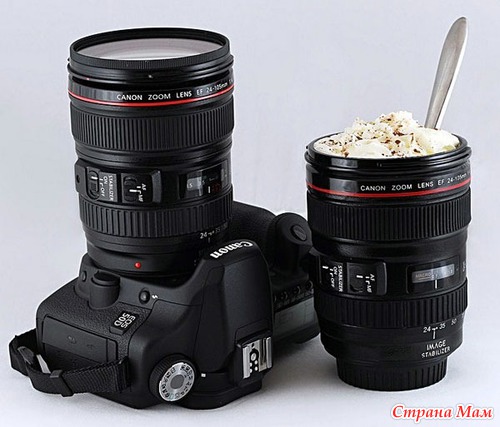Кружка-объектив настолько реалистична, что ее легко можно спутать с профессиональным оборудованием. Подобные кружки и термосы есть и Nikon, и Canon.
