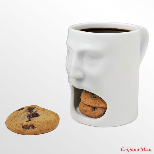 Чашка с лицом и разинутым ртом - идеальный вариант для кофе с печеньем, которое вечно некуда положить.